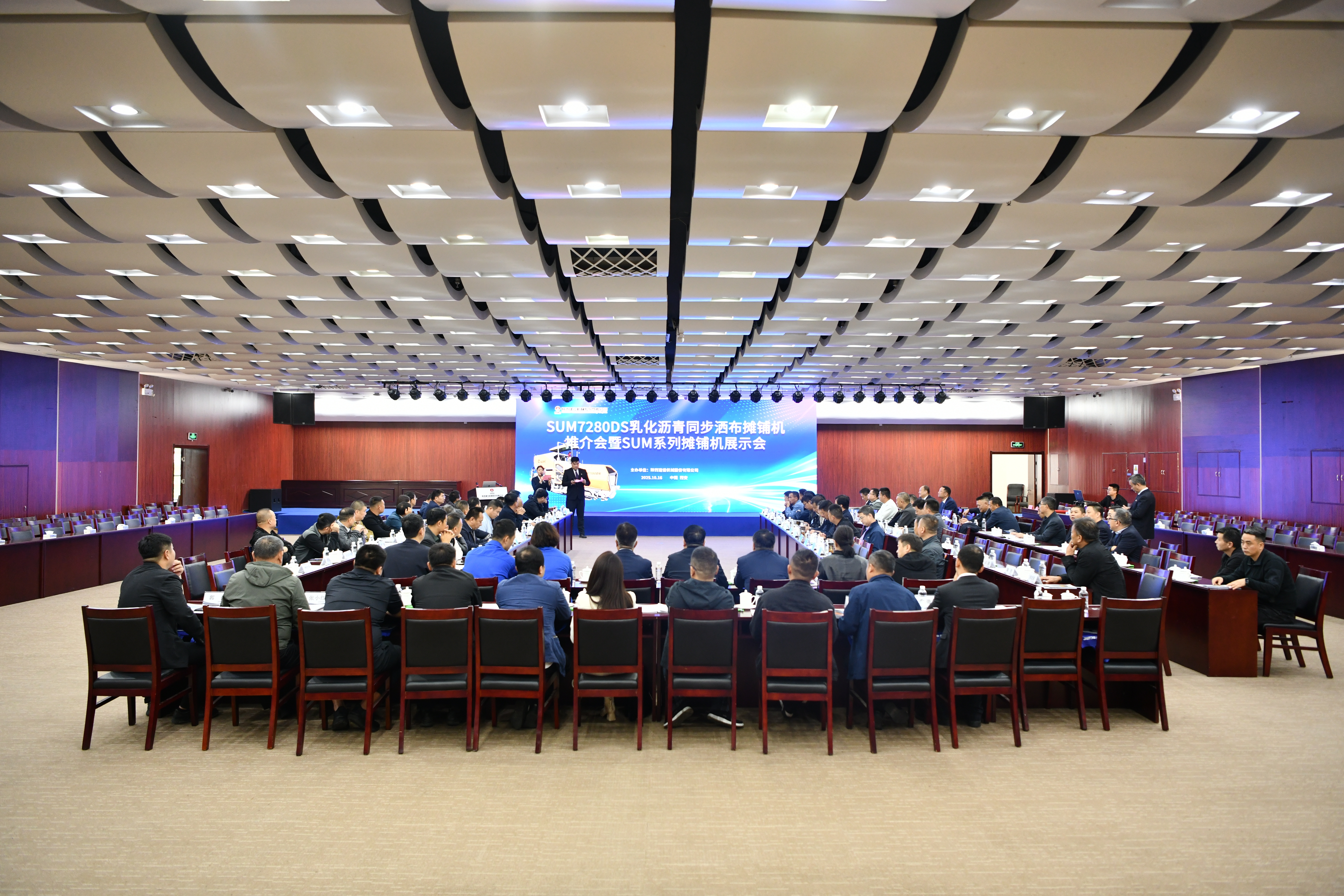 陜建機股份舉辦SUM7280DS乳化瀝青同步灑布攤鋪機推介會暨SUM系列攤鋪機展示會