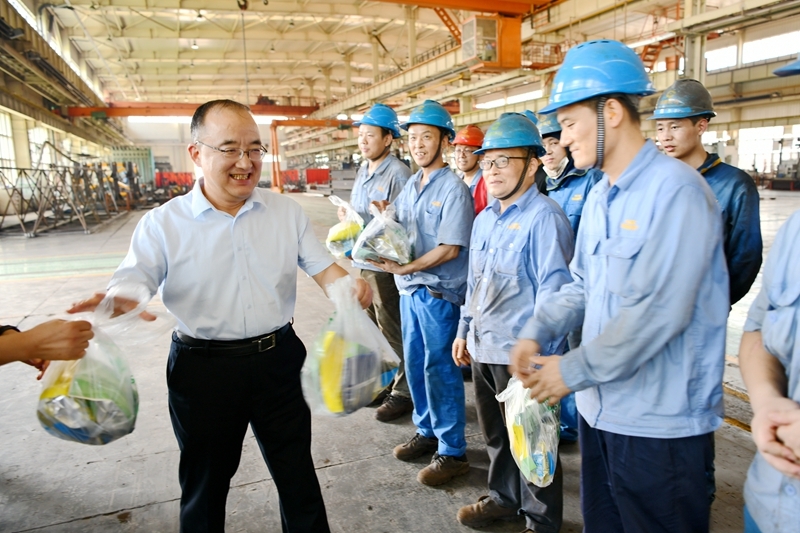 盛夏時(shí)節(jié),烈日炎炎。為進(jìn)一步推動(dòng)主題教育走深走實(shí),扎實(shí)開展“我為群眾辦實(shí)事”實(shí)踐活動(dòng),做好高溫天氣職工群眾安全健康權(quán)益,陜建機(jī)股份領(lǐng)導(dǎo)班子成員走進(jìn)基層,開展盛夏“送清涼”活動(dòng)。8月1日下午,該公司黨委書記、董事長楊宏軍等領(lǐng)導(dǎo)班子成員到鉚焊車間生產(chǎn)現(xiàn)場,把清涼物品送到了一線職工們手中。楊宏軍與職工們親切交流,關(guān)心他們身體健康,了解他們生產(chǎn)生活情況,參觀了鉚焊車間為職工配置的包含冷飲機(jī)和冰淇淋機(jī)的“清涼角”,品嘗了職工制作的冰淇淋,對鉚焊車間的做法給予充分肯定,同時(shí)叮囑大家越是在高溫天氣,越要增強(qiáng)安全意識,...